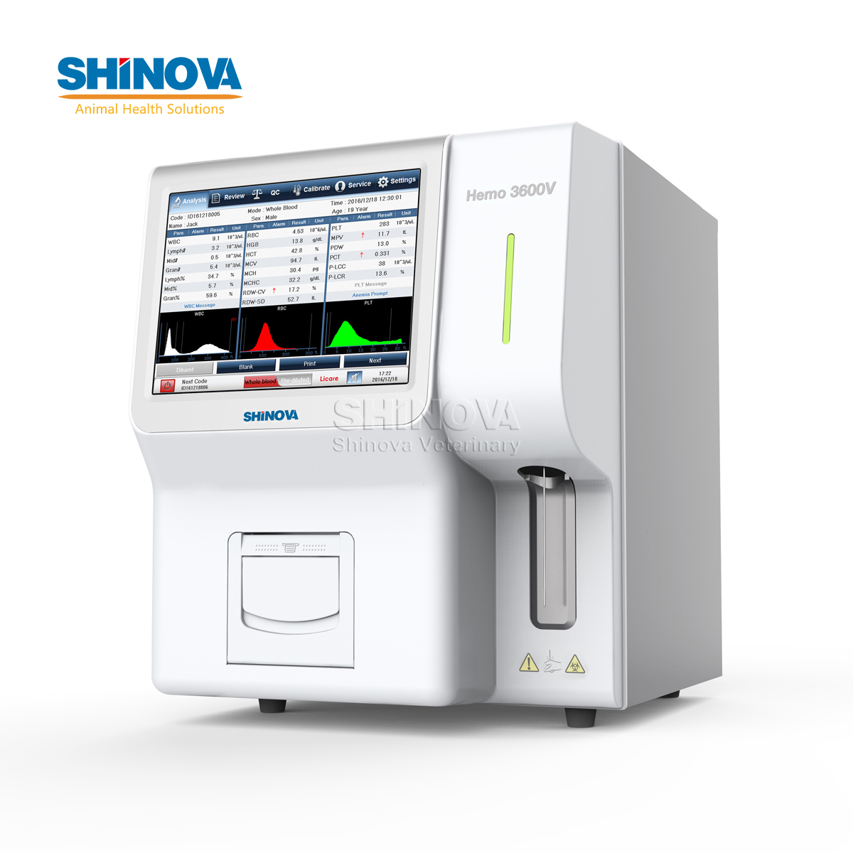 60 samples/hour, 10.4" color LCD touch screen, 21 parameters and 3 histograms; 13 pre-determined animals: Dog, Cat, Horse, Pig, Cow, Buffalo, Rabbit, Monkey, Rats, Mice, Sheep, Goat, Camel, more 3 undefined