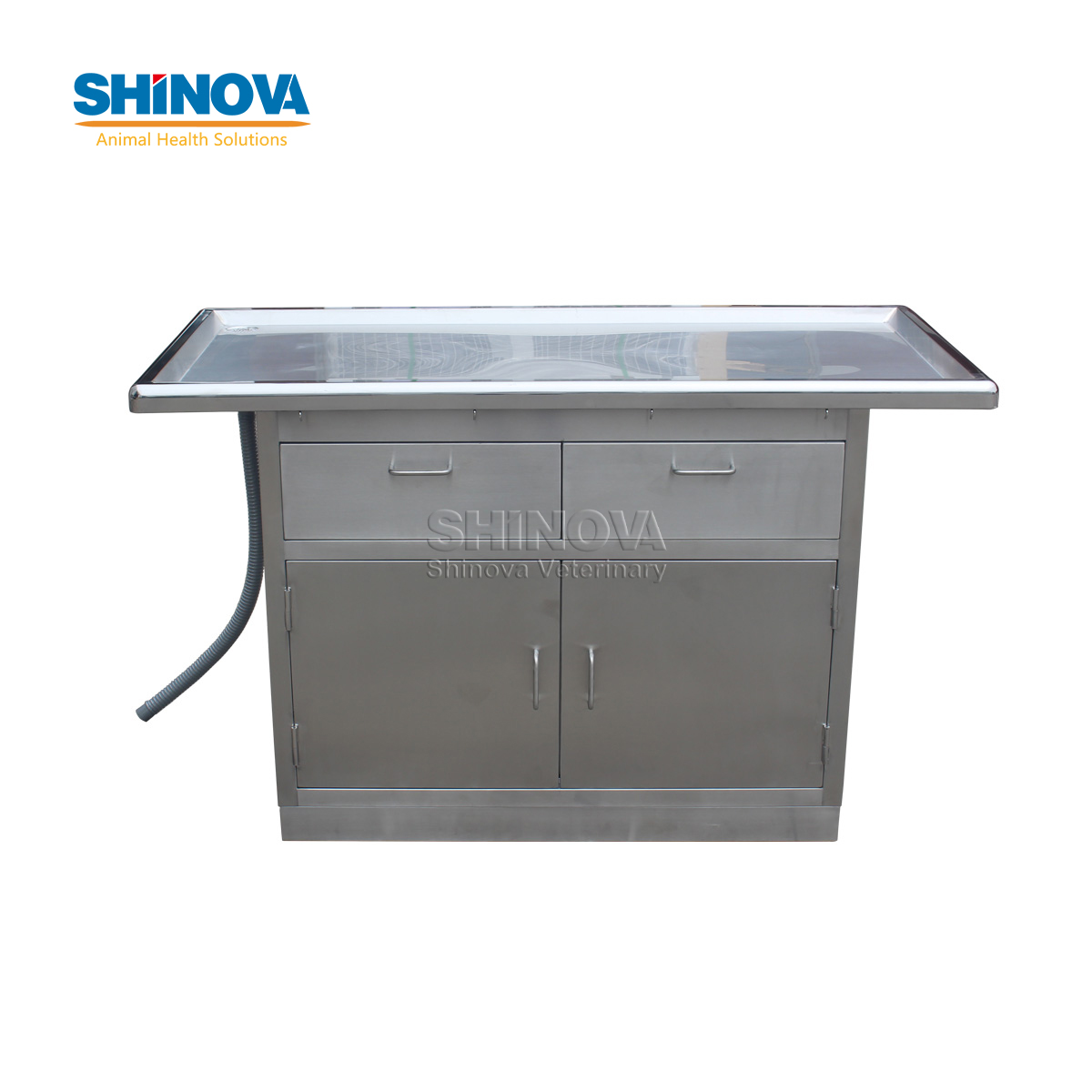Стол для ветеринарного осмотра имеет вогнутую закругленную форму, удобную для очистки и санитарной обработки.